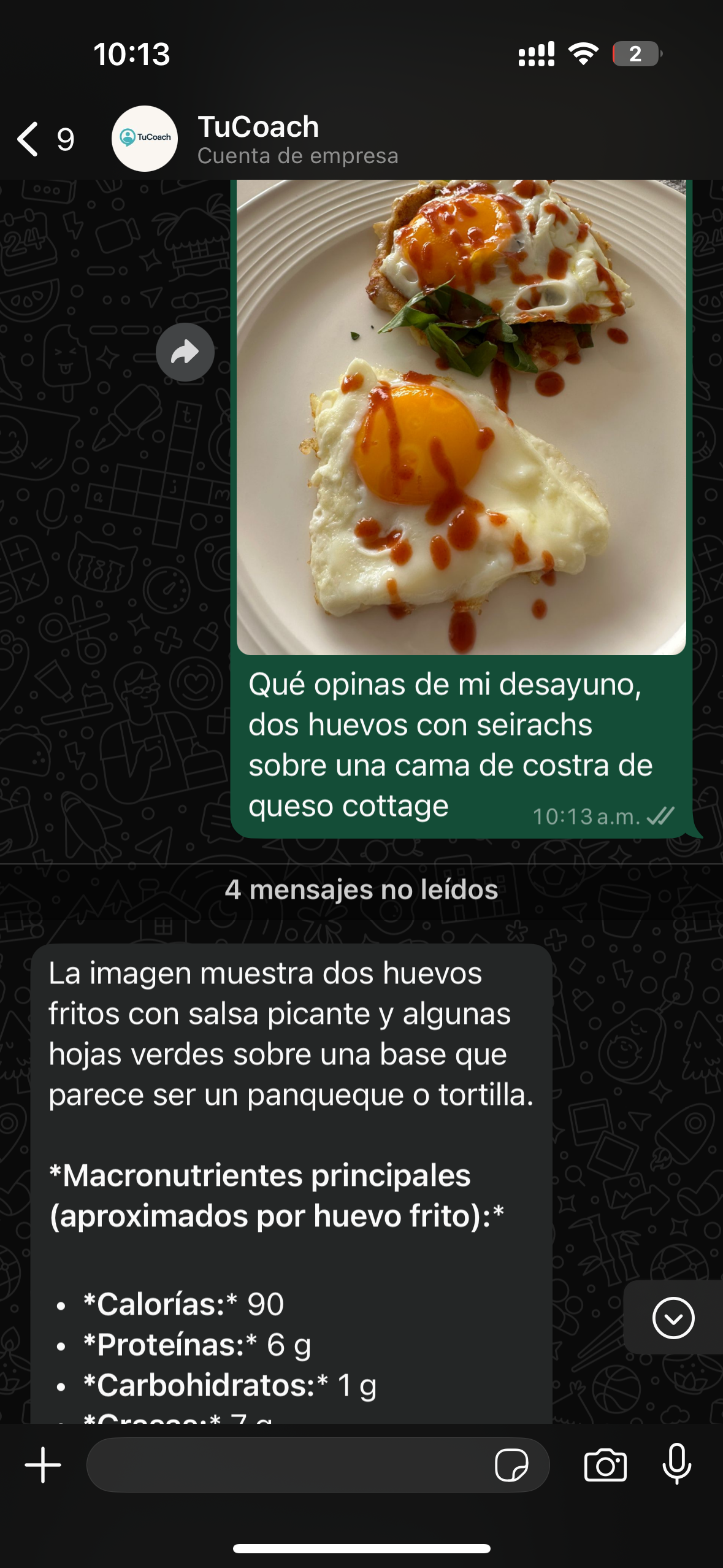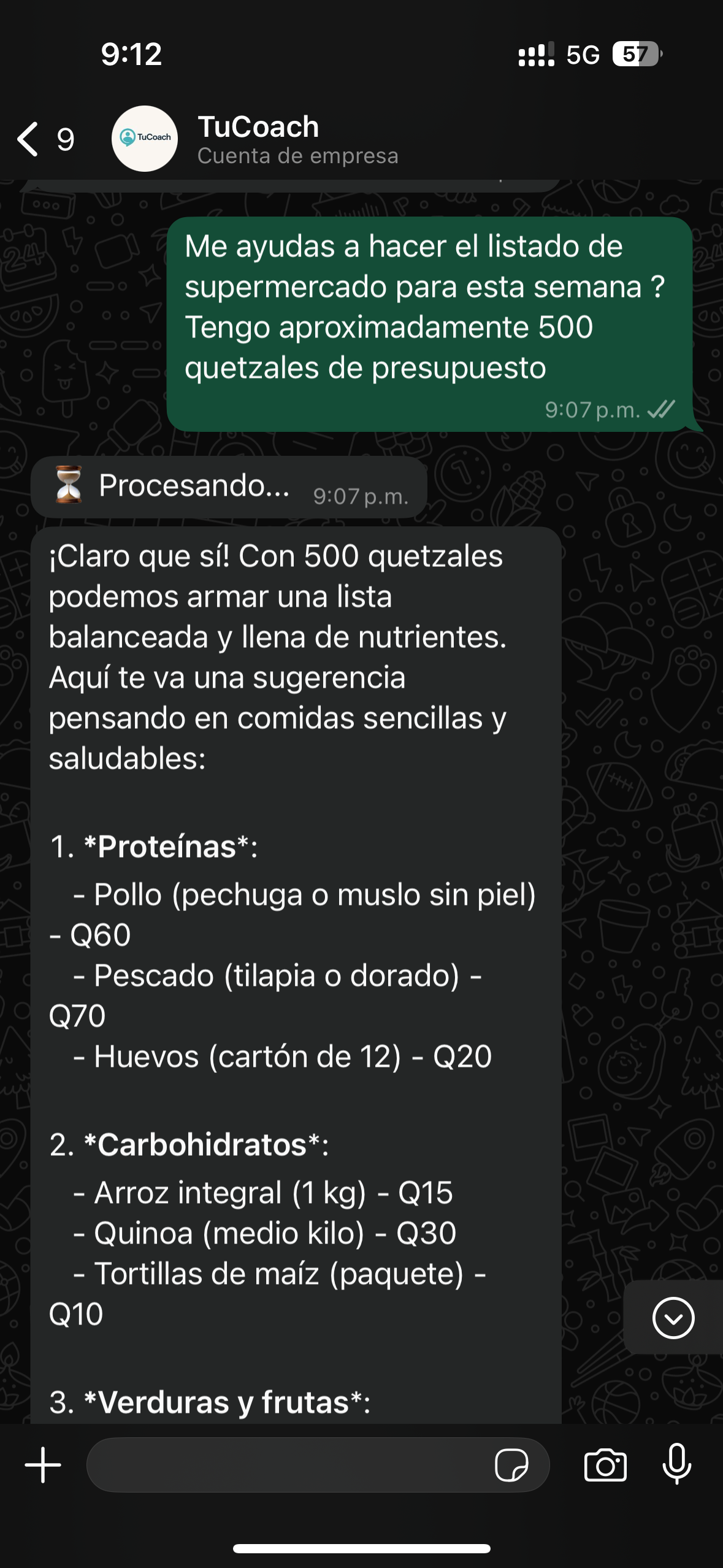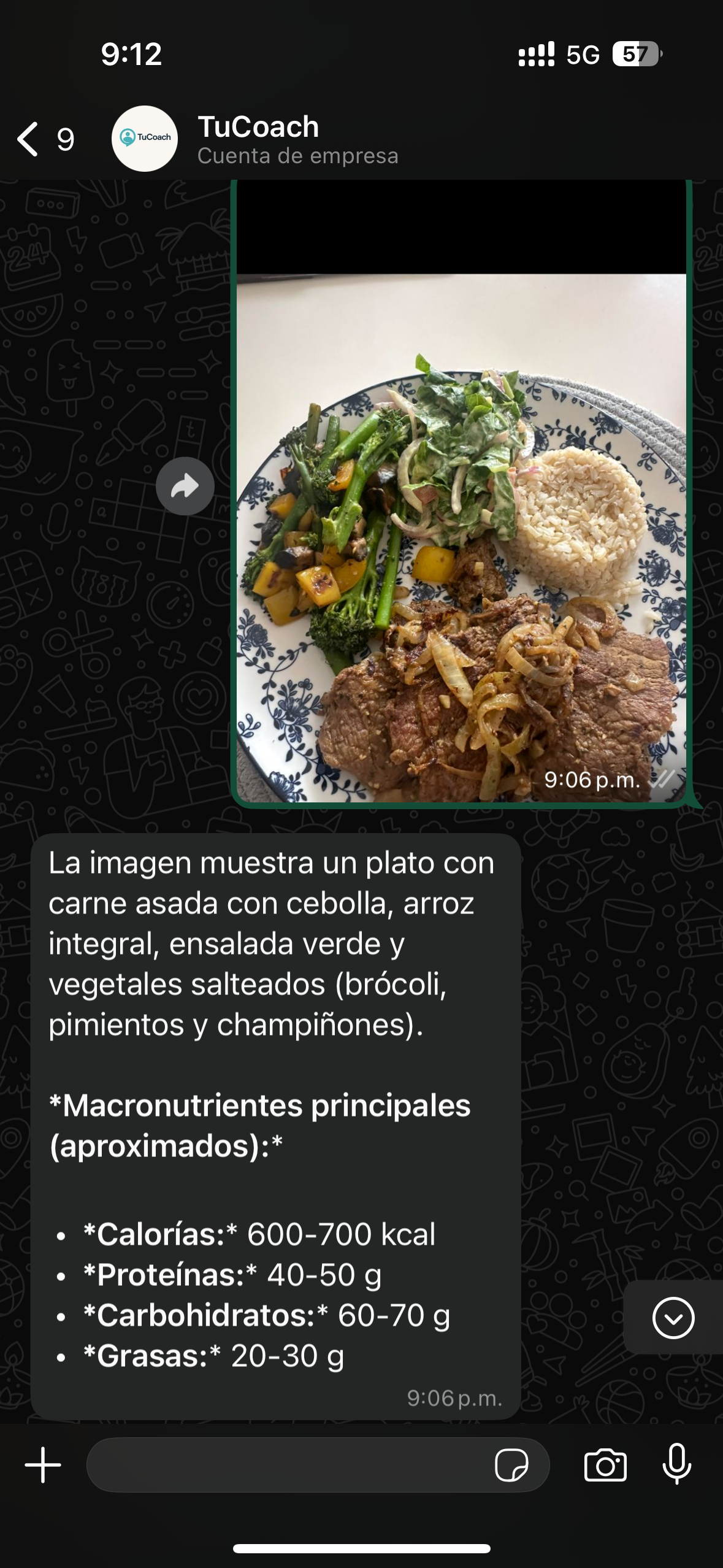 “Trabajo más de 10 horas al día y siempre había dejado mi salud para después. Con TuCoach solo necesito WhatsApp para seguir mi plan. Ya bajé 10 libras sin complicarme.”